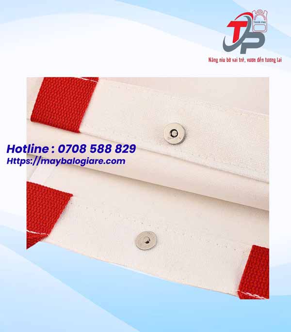 Túi đựng đồ canvas không thể thiếu khóa. May Thiên Phú sử dụng nút hít chất lượng cao, mở đóng dễ dàng nhưng vẫn đảm bảo an toàn.